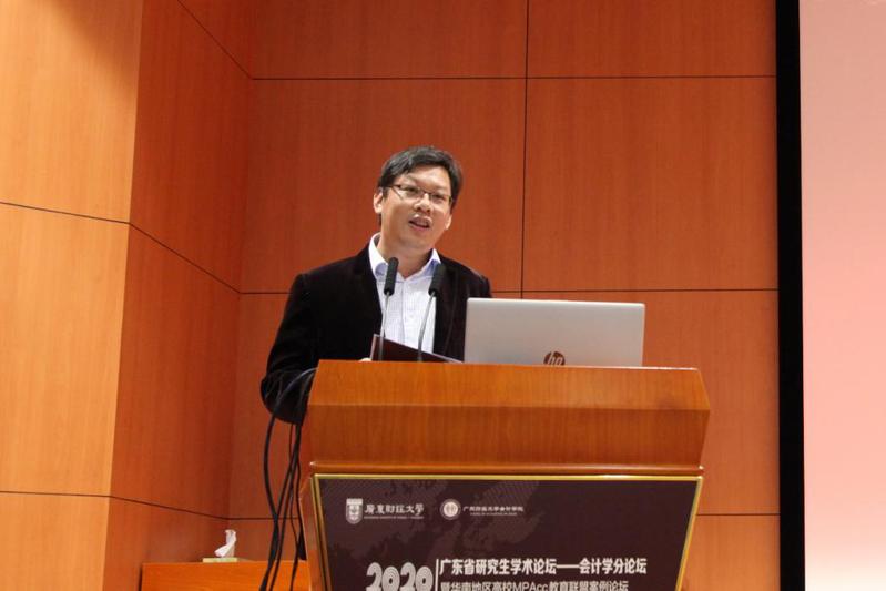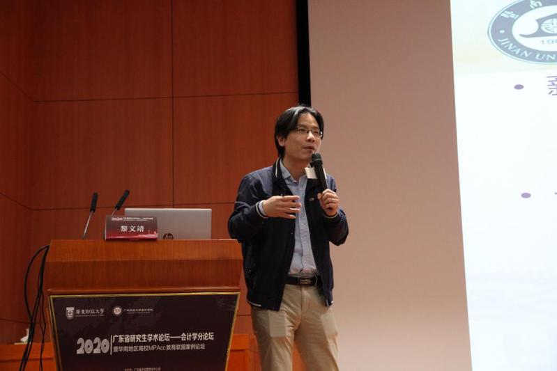 下午,专题研讨在四个线下分论坛及线上视频会议平台同时举行,广东外语外贸大学刘中华教授、中山大学蔡祥副教授、华南理工大学谢军教授、广东财经大学刘国常教授分别主持四场分论坛。来自省内外高校的20位研究生汇报论文,并接受专家点评。其中,在第一分会场“华南地区高校MPAcc教育联盟案例论坛”,暨南大学管理学院石水平副教授做“案例研究和开发:基于国际视角与中国背景”专题报告。他指出案例研究的价值体现在知识从隐性化到显性化转变的过程,并介绍了案例研究和理论学习的区别、案例素材收集的渠道、写好案例的标准和关键等内容,与会师生深受启迪。