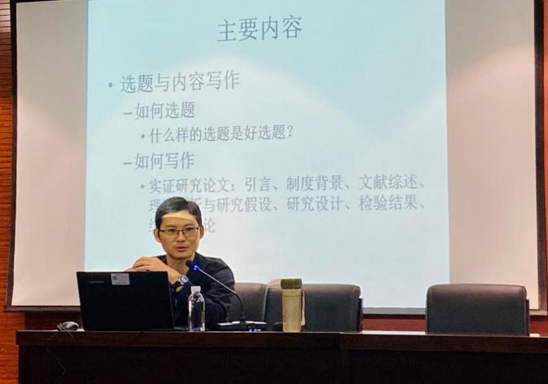 1115日上午,刘骏博士向学术型硕士研究生作了题为《论文写作的一些心得体会》的专题讲座,刘老师从选题出发强调一个好的选题的重要性,和一个好的选题的基本特征:存在性、重要性、紧迫性和创新性;在写作方面刘老师指导研究生应该做到各个部分的结构化,标题、摘要、引言、制度背景、文献综述、理论分析和研究假设层次结构分明;在英文表述方面,应简洁、直白,通篇的表述应当短句、短段、美观。