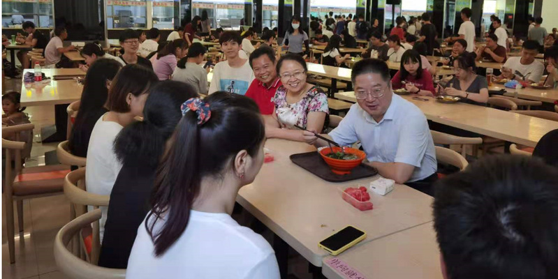 “丁老师,好!我叫陈禧越,我留校是为了考研的”“饭堂的饭菜比外面干净,也很可口,我一般都在饭堂吃。”丁友刚与同学们同桌就餐,亲切交谈,认真倾听每一位学生的想法,不时追问,了解具体情况,并逐一回应。同学们谈饮食,谈住宿,还结合自己的专业学习话理想、说困惑、谈建议,各抒己见,畅所欲言。“学生也是学校的建设者”,在回答问题时,丁友刚鼓励同学们在提出问题时也提供解决问题的方案,主动参与到学校建设当中。他鼓励同学们在大学期间博览群书,博闻强识,知行合一,积极实践,不断提高自身能力。指出大学生应该接受的是全面做人的教育,任何学科对专业都有帮助。我们培养的人不仅将来在专业上要比较出色,而且要具备全面知识,并拥有高尚品德,这样才能成为社会的领军人才,并为社会做贡献。