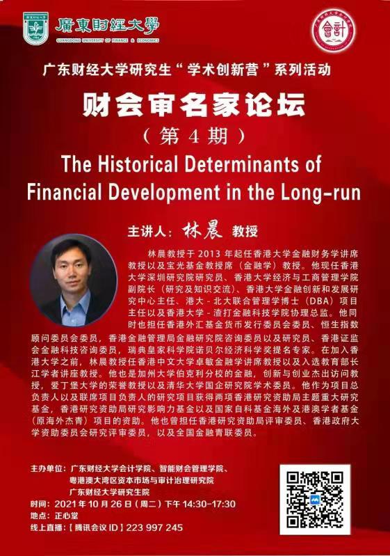 主题:财会审名家论坛(第4期)之“The Historical Determinants of Financial Development in the Long-run”