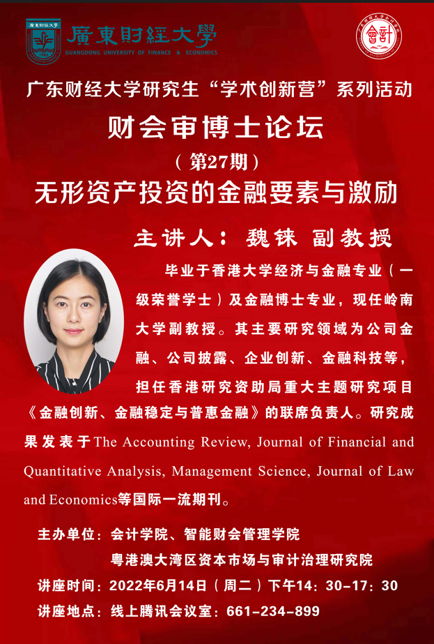 【财会审博士论坛第27期】无形资产投资的金融要素与激励