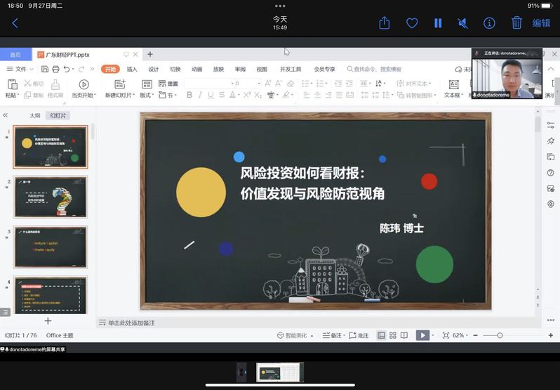 2022年9月26日晚,m88财会审知行论坛(第39期)在腾讯会议线上举办。本次论坛邀请舜世资本合伙人陈玮博士以“风险投资如何看财报:价值发现与风险防范视角”为主题进行分享。论坛由m88雷宇教授主持,学院部分教师及研究生共150余人参加。