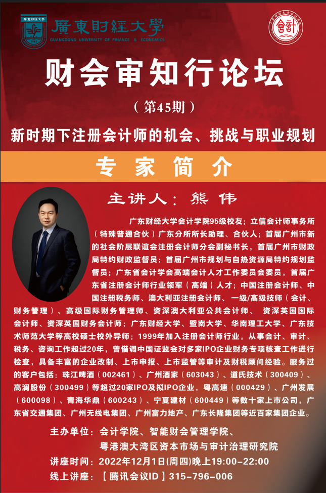 主题:财会审知行论坛(第45期)—— 新时期下注册会计师的机会、挑战与职业规划