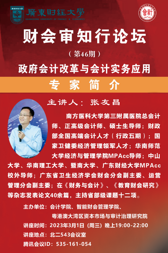 主题:财会审知行论坛(第46期)—— 政府会计改革与会计实务应用