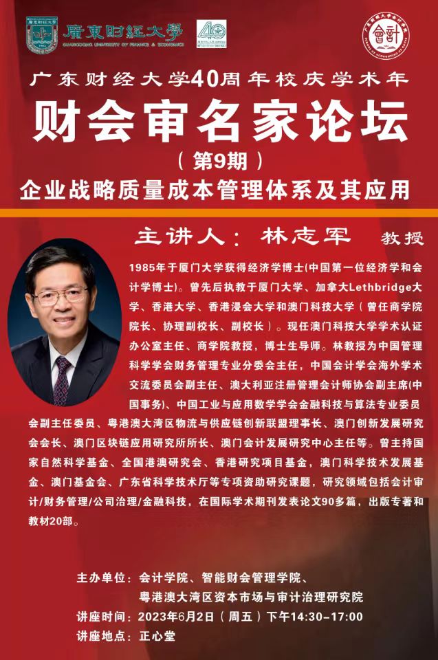 主题:财会审名家论坛(第9期)“企业战略质量成本管理体系及其应用”