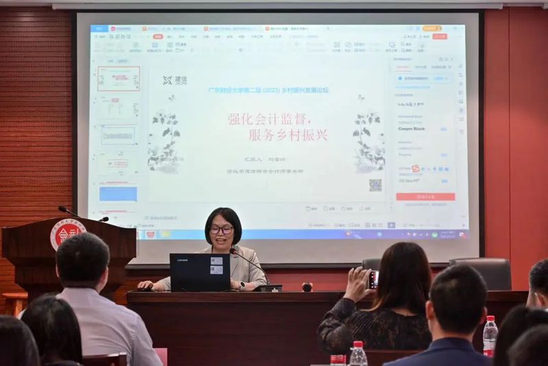 刘雪玲报告的题目是《强化会计监督,服务乡村振兴》。她介绍了乡村振兴战略下的主要会计主体和加强会计监督的必要性,结合案例分享了对加强会计监督的一些思考。