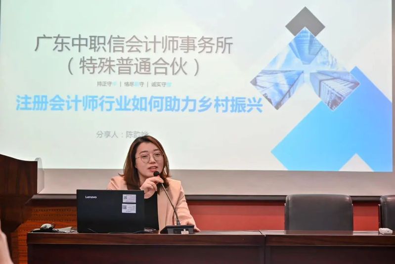 陈韵桦分享了《注册会计师行业如何助力乡村振兴》。她介绍了注册会计师行业的价值体现,分析了广东省在乡村振兴实施过程中的政策导向,并从审计监督、咨询服务等方面提出注册会计师行业助力乡村振兴的路径。