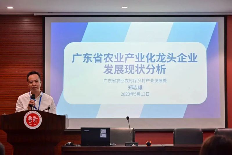 郑志雄做题为《广东省农业产业化龙头企业发展现状分析》的报告。他介绍了广东农业产业化发展概况和主要工作举措,将广东与农业发达省份进行对比,分析存在的主要问题,提出农业产业化发展趋势、主攻方向和未来工作思路。