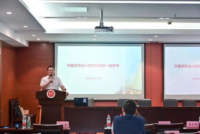 雷宇分享的题目是《开展农村会计教学科研的一些思考》。他分析了企业会计、政府会计和农村会计的发展历程,呼吁老师同学们更多地开展农村会计教学科研。