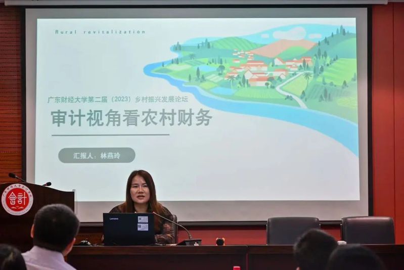 林燕玲分享的题目是《审计视角看农村财务》。她从统筹管理、法规依据、审计规范和审计对象特殊性四个方面介绍了农村财务审计的现状,并从创新财务模式、提高财务管理能力、激发集体成员动力、拓展监督角度等方面提出加强农村财务管理的思考。