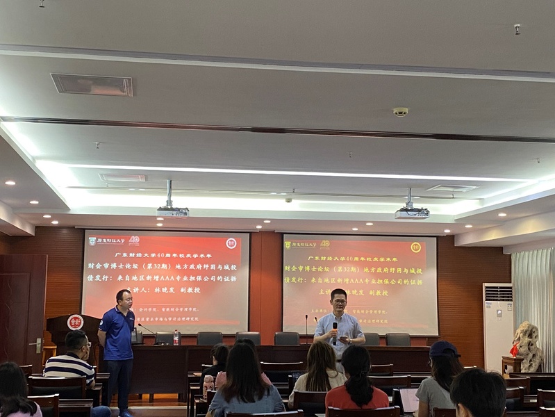 2023年6月16日下午,m88、智能财会管理学院、粤港澳大湾区资本市场与审计治理研究院联合举办了广东财经大学40周年校庆学术年—财会审博士论坛(第32期)。本次论坛邀请了武汉大学经济与管理学院林晚发副教授,以“地方争渡纾困与城投债发行:来自地区新增AAA专业担保公司的证据”为主题,为m88师生进行分享。论坛由m88杨志强副院长主持,学院部分教师、研究生共计50余人参加。