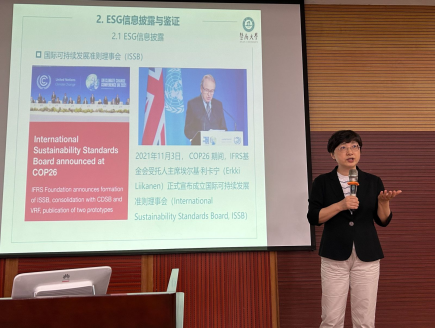 在提问环节中,沈教授认真回答了同学们的疑问,并对未来想从事ESG相关工作的同学提出了建议:注重培养沟通能力和学习能力,除了在课堂上学习相关知识,也要充分利用好课外及线上资源,加强对相关知识的了解,提高自主学习能力。