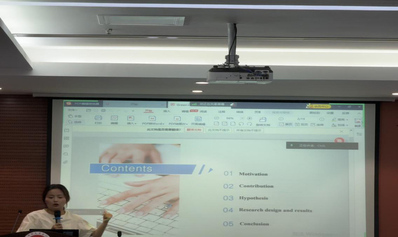 第三个主题是由刘婷老师报告了她的论文《Green Makes Bigger: Green Innovation and Firms’ Acquisition Behavior》。刘老师探讨了在绿色转型发展的大背景下,基于利益相关者理论,企业的绿色创新是如何推动并购行为的。经过严密的实证分析发现,企业通过绿色创新,收获了利益相关者的支持,从而推动了企业的并购行为,同时也为企业创造了良好的并购绩效。