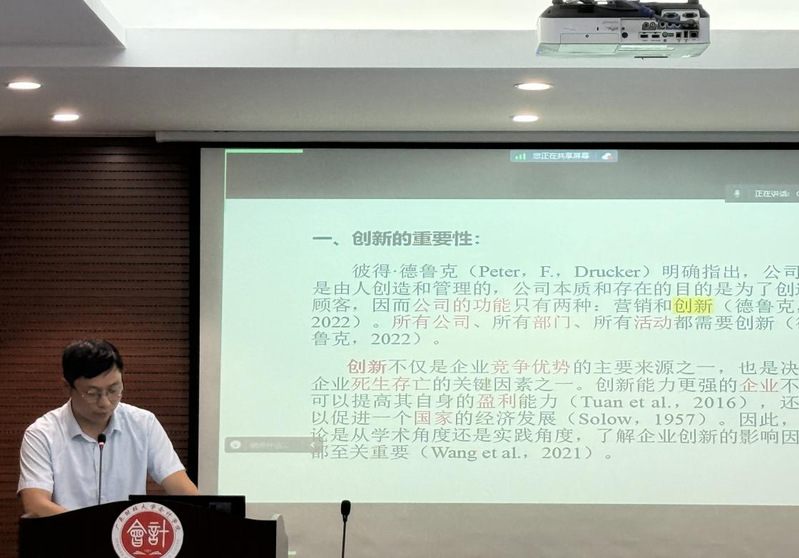 第二个主题是由廖友亮老师报告其工作论文《企业文化、内部控制与企业创新》。廖老师聚焦企业文化、内部控制与企业创新的相互作用。强调创新是企业核心竞争力的关键,内部控制对企业运营至关重要,而企业文化则是推动创新的灵魂。通过竞争价值观模型和契约理论,构建了企业文化类型与内部控制、创新关系的框架。实证分析表明,灵活(创造)型和市场(竞争)型文化能显著促进企业创新,而部落(合作)型和等级(控制)型文化则有抑制作用。研究为企业提供了文化建设、内部控制和创新激励机制设计的指政策建议。
