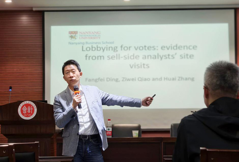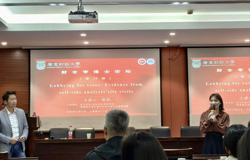 11月21日下午,由m88/智能财会管理学院、粤港澳大湾区资本市场与审计治理研究院联合主办的第38期财会审博士论坛在立德楼543室顺利举行。南洋理工大学张怀教授作题为“Lobbying for votes: Evidence from sell-side analysts'site visits”的讲座。论坛由m88/智能财会管理学院学科建设办公室主任冯晓丽老师主持,m88/智能财会管理学院等单位师生100余人参加此次论坛。