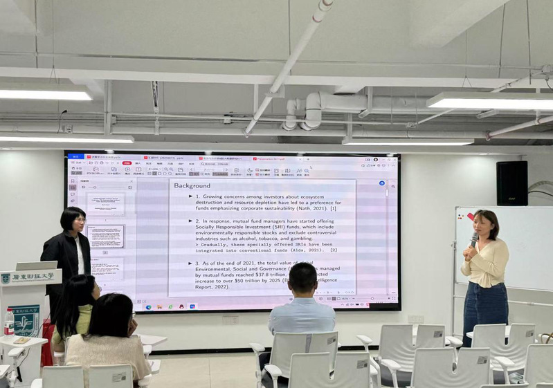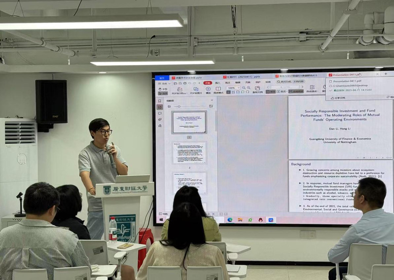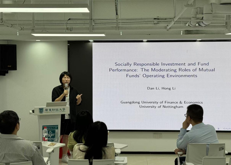 第三个主题是由李丹老师报告其工作论文《Socially responsible investment and fund performance: The moderating roles of mutual funds' operating environments》。李老师探讨了社会责任投资(SRI)对基金绩效的影响,以及市场不确定性和SRI披露要求的调节作用。李老师通过研究发现,SRI整合对基金绩效的影响呈倒U型,即适度的SRI整合可以提升基金绩效,但过度整合则会降低绩效。李老师认为,市场不确定性会削弱这种非线性影响,而SRI披露要求则会增强SRI整合对基金绩效的积极影响,因此提示投资者需调整对SRI财务回报的预期,基金经理应灵活调整SRI策略以应对市场变化并确保合规,政策制定者则需确保相关法规不会过度限制基金的投资策略灵活性。
