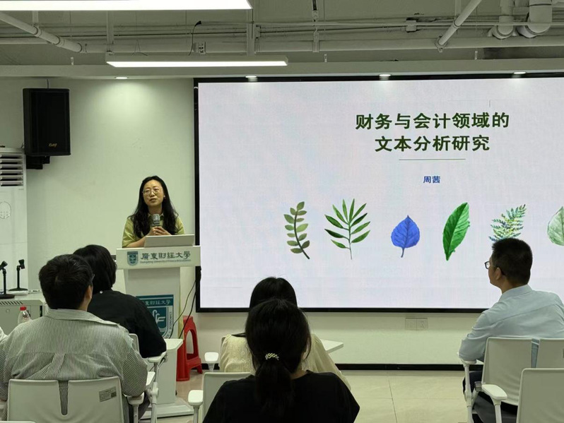 第二个主题是由周茜老师报告其最近开展的研究内容《财务与会计领域的文本分析研究》,主要探讨了文本分析在财务与会计研究中的应用现状、分析框架、流程以及具体应用案例。周老师首先指出文本分析在会计研究中的重要性日益凸显,尤其是在2010-2021年间,顶级会计期刊中相关研究数量显著增加。紧接着,周老师详细介绍了从文本预处理到文本分词以及文档表达的关键步骤,展示了多种方法,包括无监督学习和有监督学习,列举了文本分析在财务与会计领域的多种应用,如文本可读性分析、文本相似性研究、文本情绪分析等。最后,周老师强调了文本分析在财务与会计研究中的潜力和挑战,认为未来的研究可以进一步开拓非结构化数据的来源,并从更多角度考察公司大数据对其决策与行为的影响。